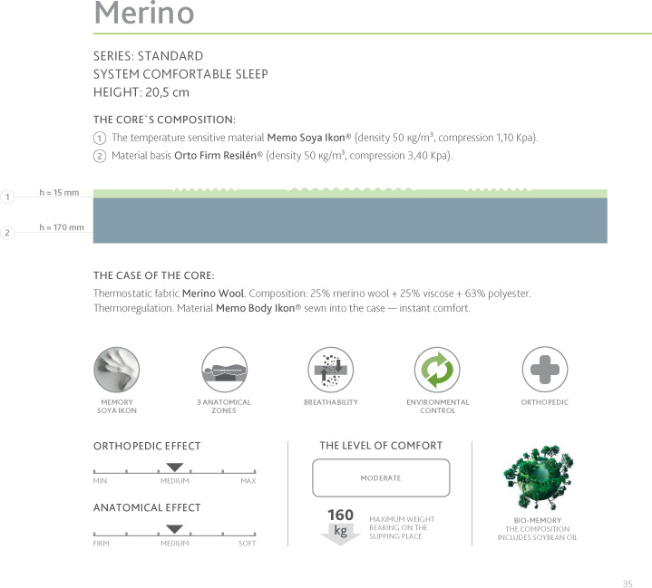 Coverage of merino wool has many medicinal properties, it reduces pain, especially rheumatism and sciatica; it improves the peripheral blood circulation, ensures normal body heat, regulates moisture, prevents electrostatic energy, wear resistant. Wool retains human body temperature at the mattress surface, thereby contributes to a comfortable sleep in winter. mattress cover made of merino wool is an essential coating for use in children and adolescent mattresses — heat exchange system of children is not fully operational yet, and the child, using natural wool on the mattress feels comfortable.