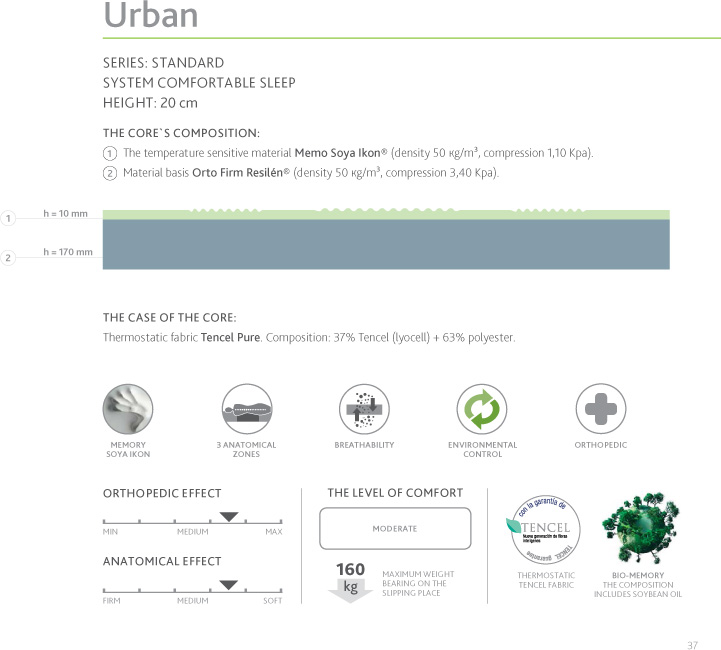 Comfortable mattress due to a combination of high orthopedic effect with moderately-ideal level of comfort. 4 cm of material with memory effect provide a comfortable anatomical support and the main core made of carrier material creates an optimal orthopedic effect for all types of users regardless of their weight height and age. self-moulding material with memory effect adapts perfectly to the shape of our body to minimize back pressure and creates the classic comfort (not soft and hard) for sleep and rest.